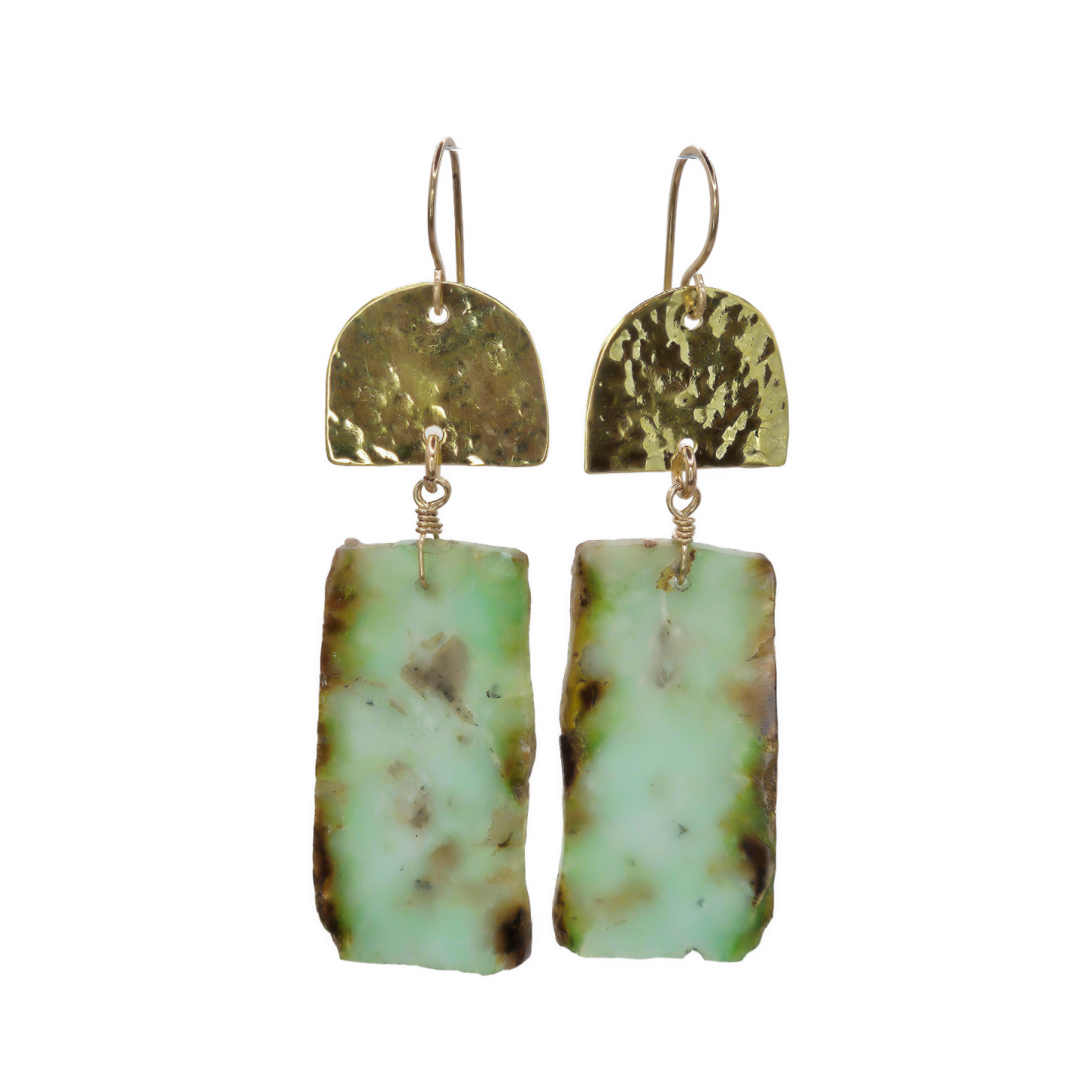 Amazonite Slices on Hammered Brass with Gold Filled Ear Wires