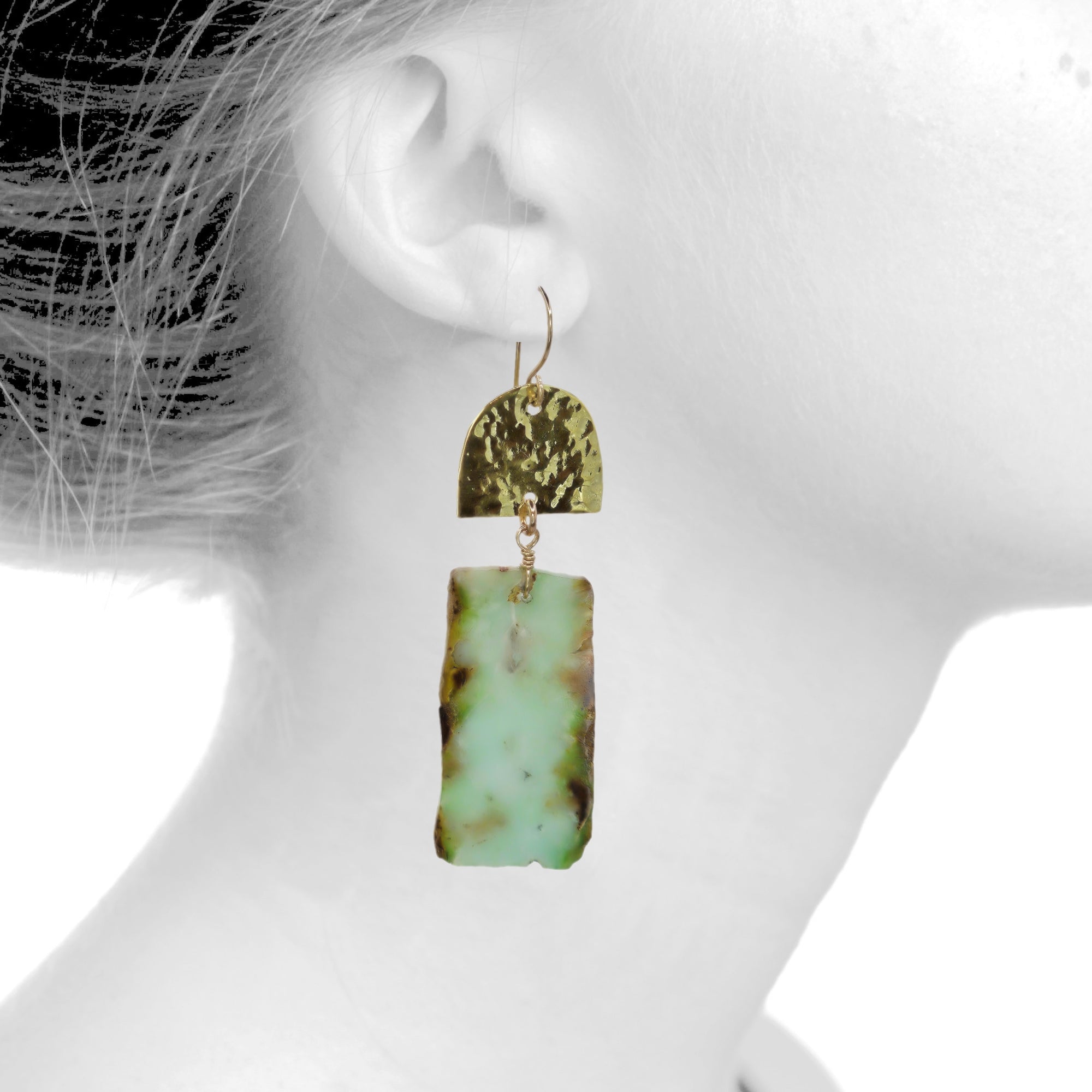 Amazonite Slices on Hammered Brass with Gold Filled Ear Wires 3" Long