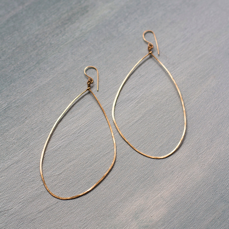 Extra Large Hammered Gold Filled Asymmetrical Teardrop Earrings 4.5" Long