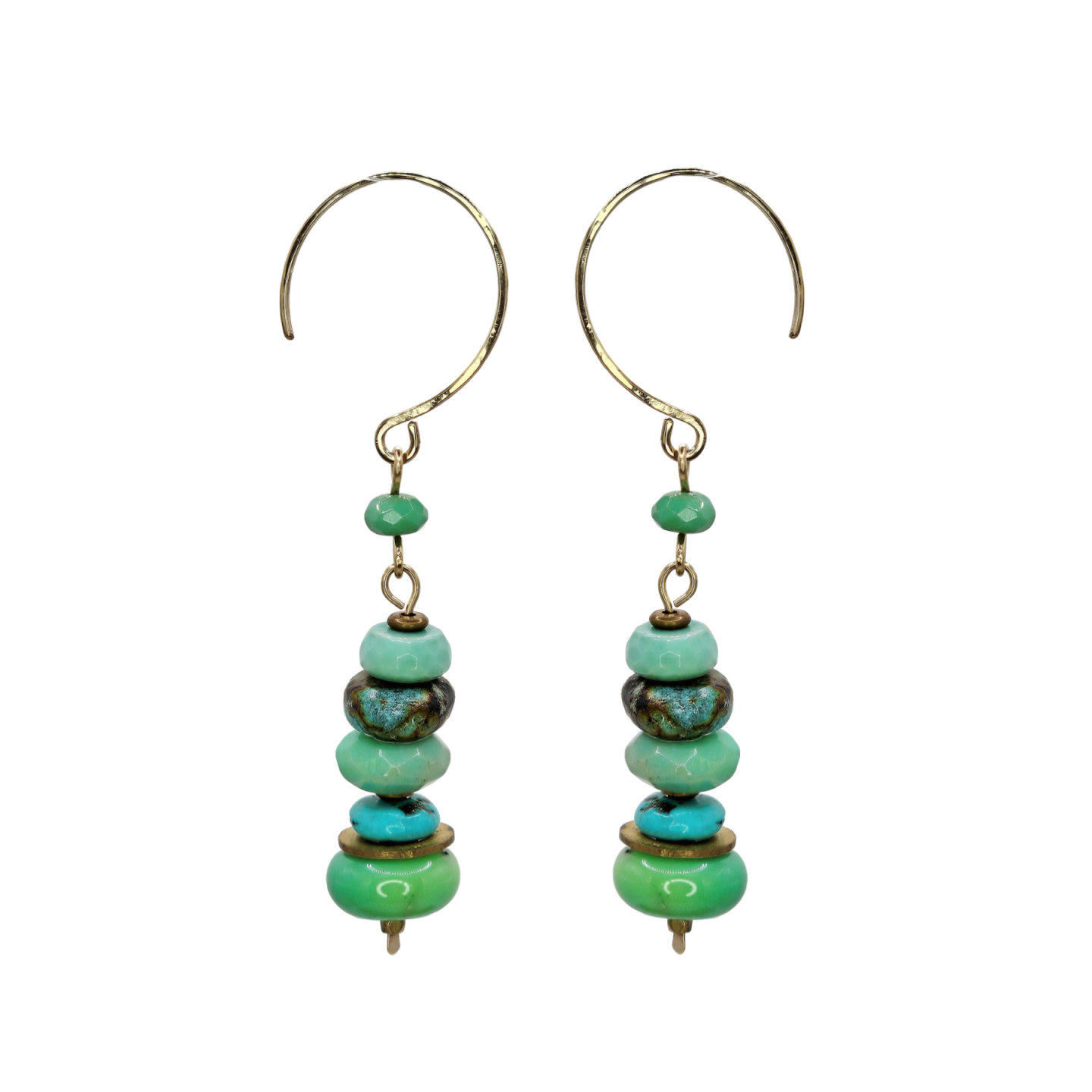 Layered Turquoise, Amazonite and Brass on Gold Filled Ear Wire
