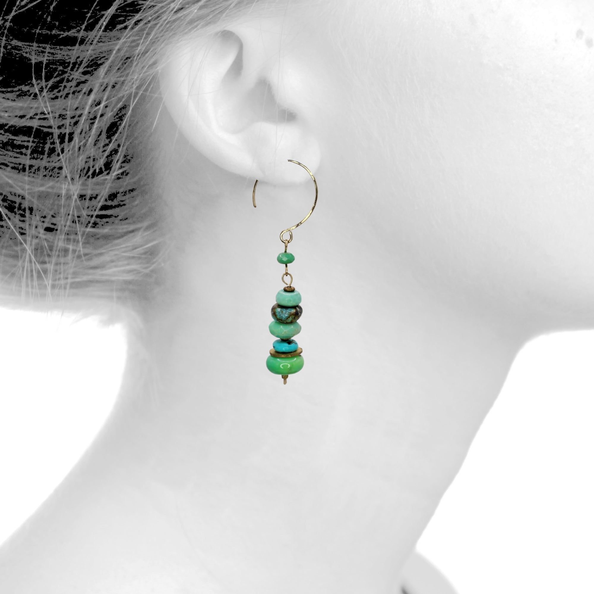 Layered Turquoise, Amazonite and Brass on Gold Filled Ear Wire 3" Long