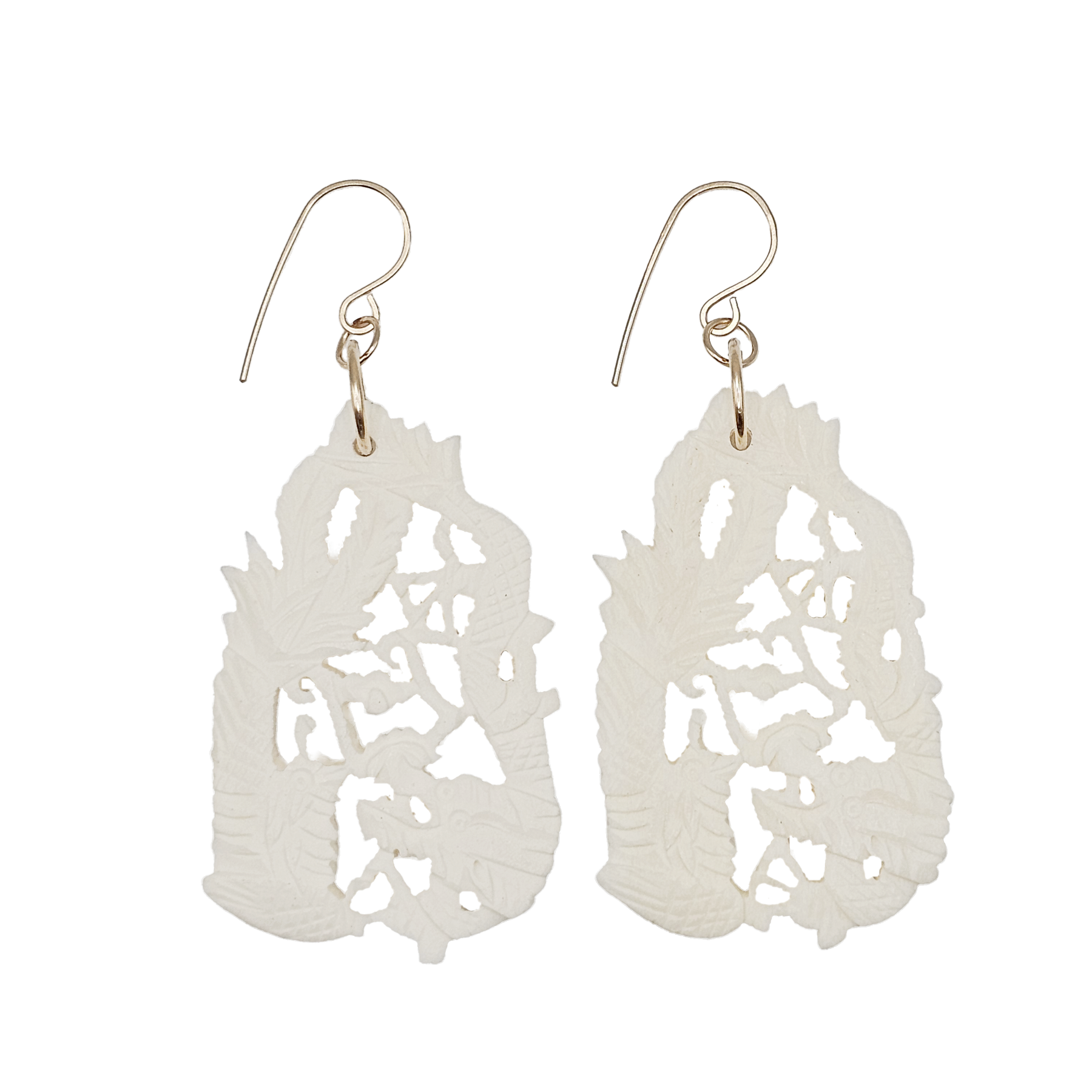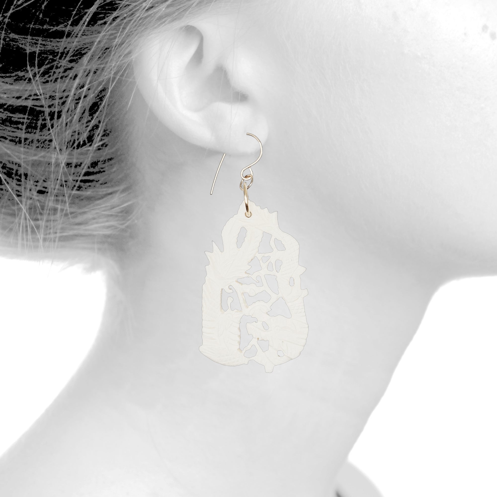 One of Kind Carved Bone Earring on Gold Filled Ear Wire