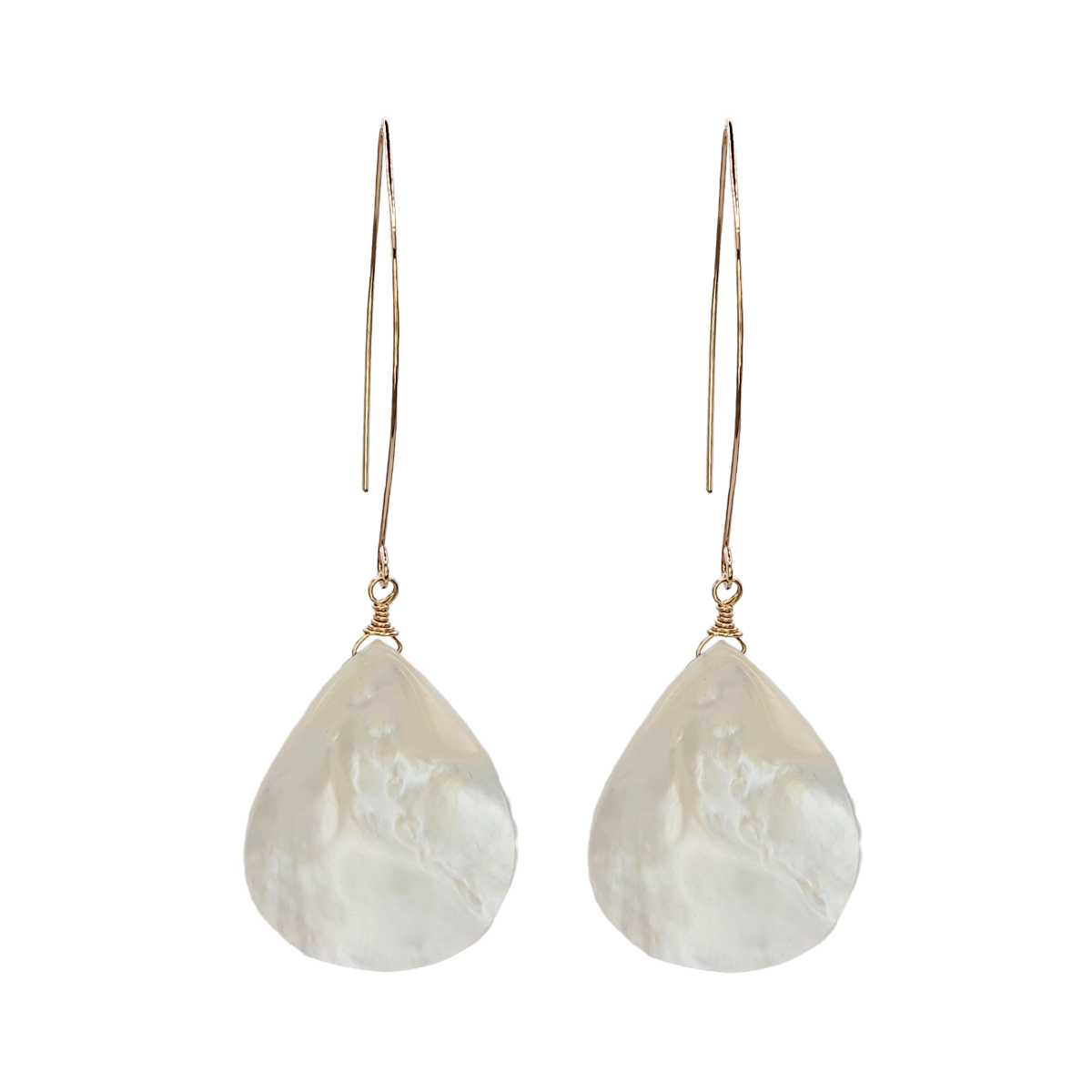 Teardrop Mother of Pearl on Hammered Gold Ear Wires