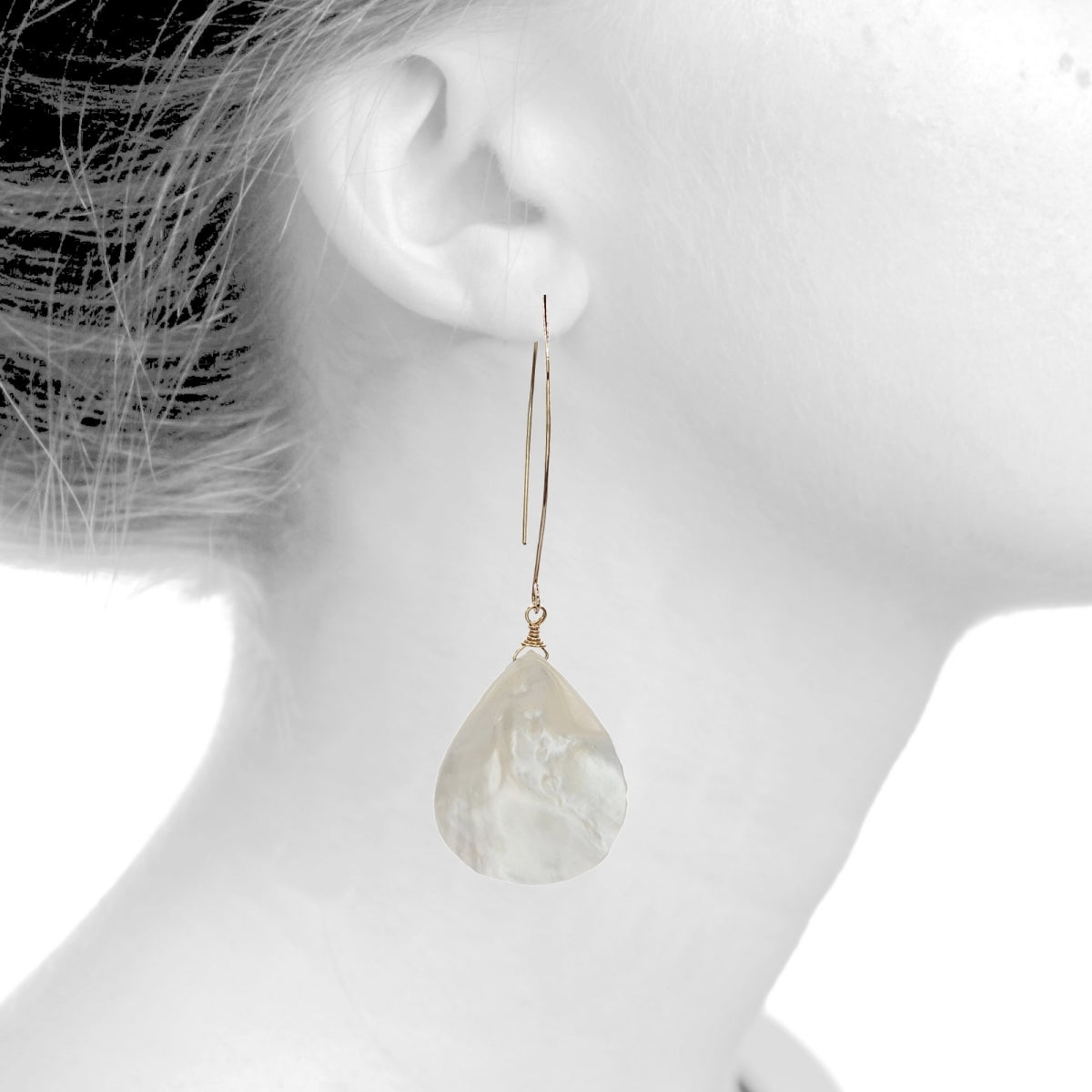 Teardrop Mother of Pearl on Hammered Gold Ear Wires 3.75" Long