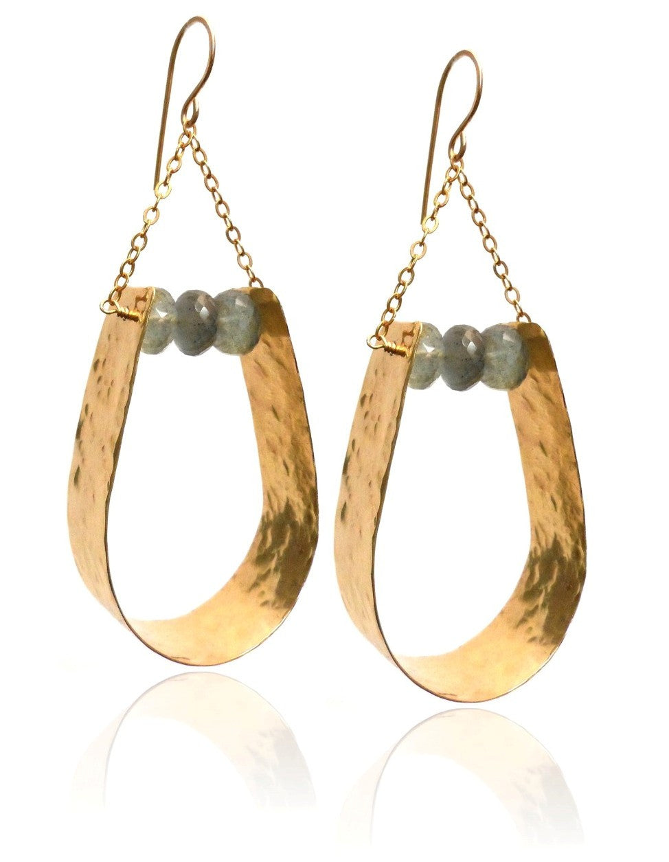 Hammered Brass with Moss Aquamarine Faceted Rondells