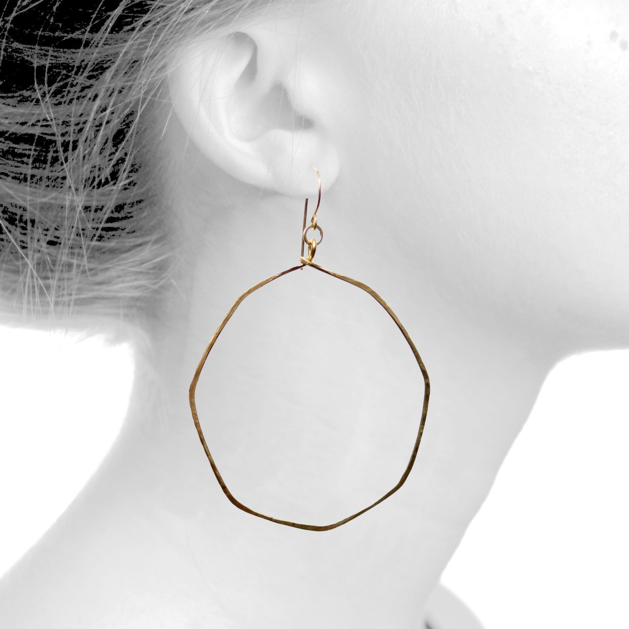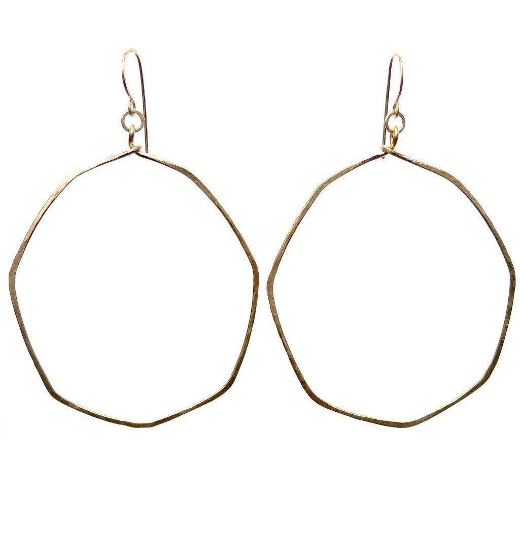 E0599G Matte Gold Filled Hammered Long Octagon Earrings