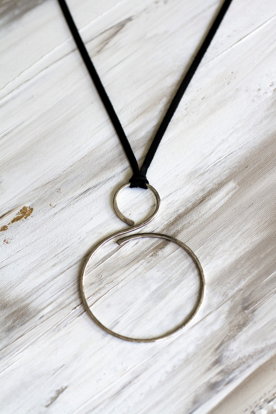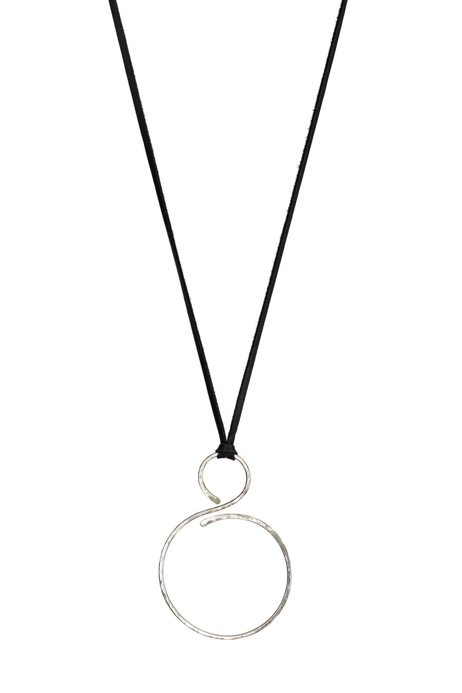 2232 OVERSIZED HAMMERED STERLING SWIRL PENDANT ON BLACK LEATHER NECKLACE