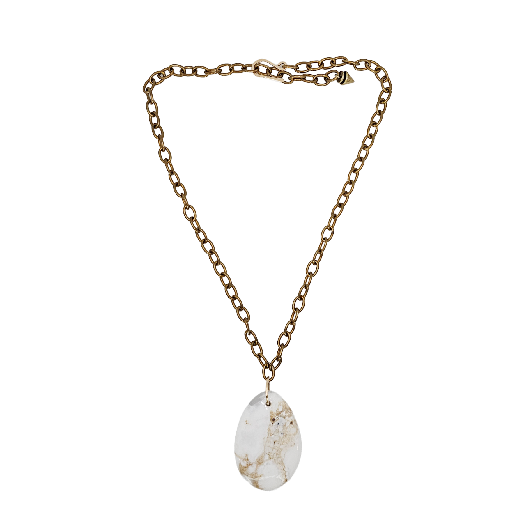2235 Tumbled Agate Pendant on Brass Chain. Each pendant will be unique in size and inherent organic markings.